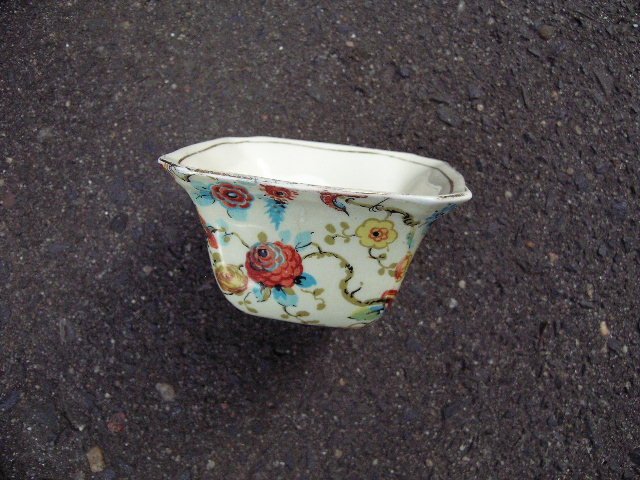 Ciekawe niewielkie naczynie sygnowane ROYAL WINTON IVORY Grimwades England i numerycznie 768885. Ciekawie zdobienie z zewnątrz - z każdej strony nieco inny wzór. Na waniliowym tle ,delikatne zdobienie florystyczne w delikatnych,ale żywych barwach. Całość wykończona na satynowo-błyszcząco. Wewnątrz błyszczące ecru i delikatne złocenie. Bardzo ciekawe i w pełni użytkowe - na konfiturę,chrzan,musztardę....