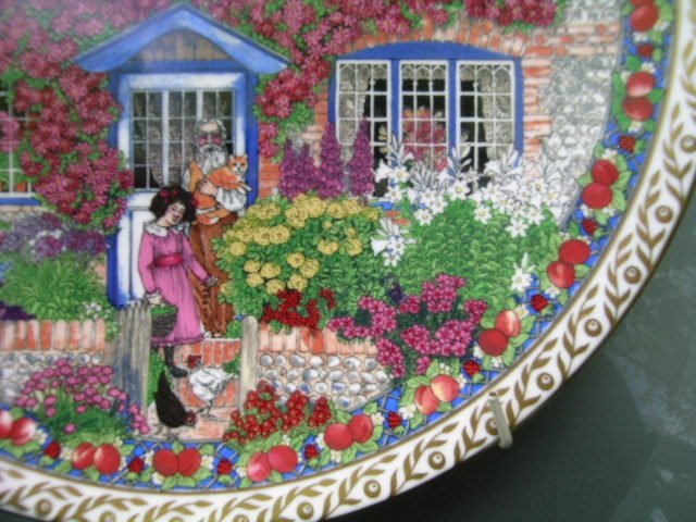 Kolekcjonerski Talerz porcelanowy sygnowany jakością Royal Worcester. Made in England. Z serii COUNTRY COTTAGES ze zdobieniem SUE SULLARD.