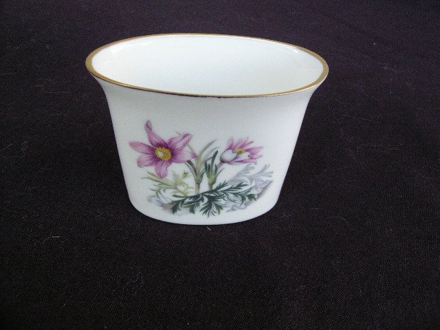 Romantycznie eleganckie naczynie z cienkiej, szlachetnej porcelany, sygnowane Royal Worcester Fine Bone China Made in England. z delikatnym kwiatowym zdobieniem.Biała porcelana na błyszcząco wykończona,delikatne barwy kwiatowego zdobienia różnego z obu stron. Rant złocony. Na papierosy,kosmetyczne waciki,wykałaczki...Wielce ciekawy i elegancki kształt