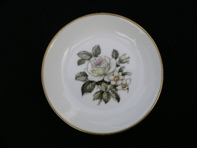 Porcelanowy,niewielki talerzyk - miseczka. Jakość porcelany ROYAL WORCESTER 51 Fine Bone China Made in England. Ciepla biel i kwiatowy wzór oraz satynowe rantu złocenie. 9,5 x 6,5 x 2