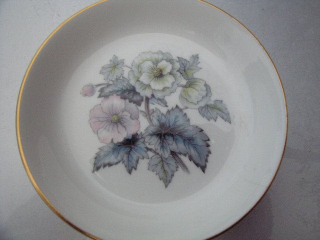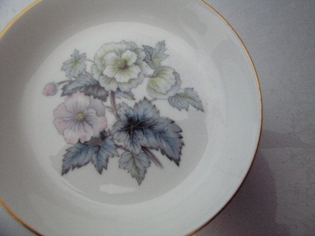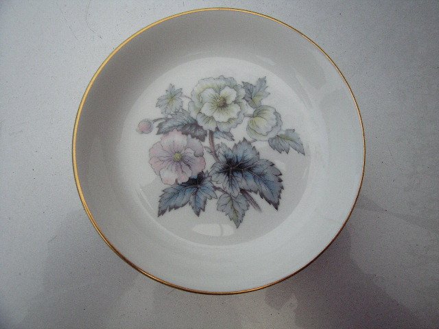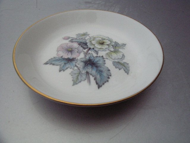 Porcelanowy,niewielki talerzyk - miseczka. Jakość porcelany ROYAL WORCESTER 51 Fine Bone China Made in England. Ciepla biel i chłodny kwiatowy /ciemierniki/ wzór oraz satynowe rantu złocenie. 11,5 x 2