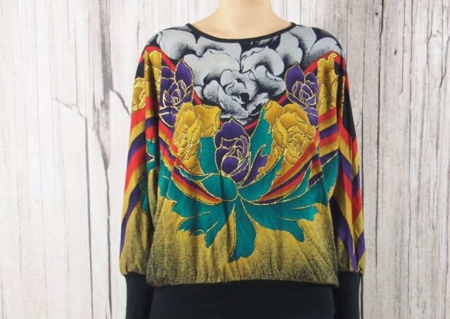 Śliczny sweterek z dawnych lat. Świetna aplikacja z różą. Materiał: bawełna lub wiskoza.