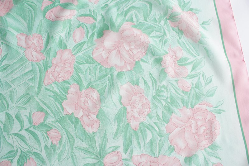 Lekka, zwiewna chusta w kwiaty. Materiał to prawdodpoobnie poliester.