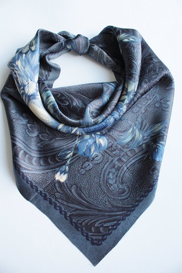 Chusta w niebieskie róże wykonana prawdopodobnie z jedwabiu.
