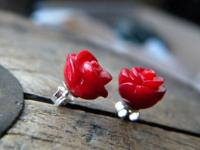 kolczyki ze srebra i naturalnego korala.średnica kwiatka ok 1cm