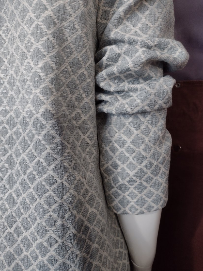 MATERIAŁY - tkanina wierzchnia to żakard w srebrzysto błękitne kwadraty,