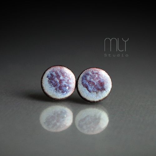 Ceramiczne kolczyki w formie sztyftów, ręcznie wykonane z delikatnej kamionki, jednostronnie szkliwione różowo szarym szkliwem z efektem plamek, na antyalergicznych sztyftach w kolorze srebrnym.Średnica ok. 12mm.. Polecam . Termin realizacji zamówienia to 1-2 dni.