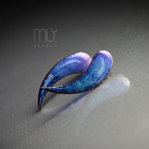 Ceramiczne podłużne kolczyki, ręcznie wykonane z delikatnej gliny kamionkowej, jednostronnie szkliwione mieszanką fioletowych i błękitnych szkliw z efektem plamek, tył matowy czekoladowobrązowy na antyalergicznych sztyftach.długość ok 2,8cm. Polecam