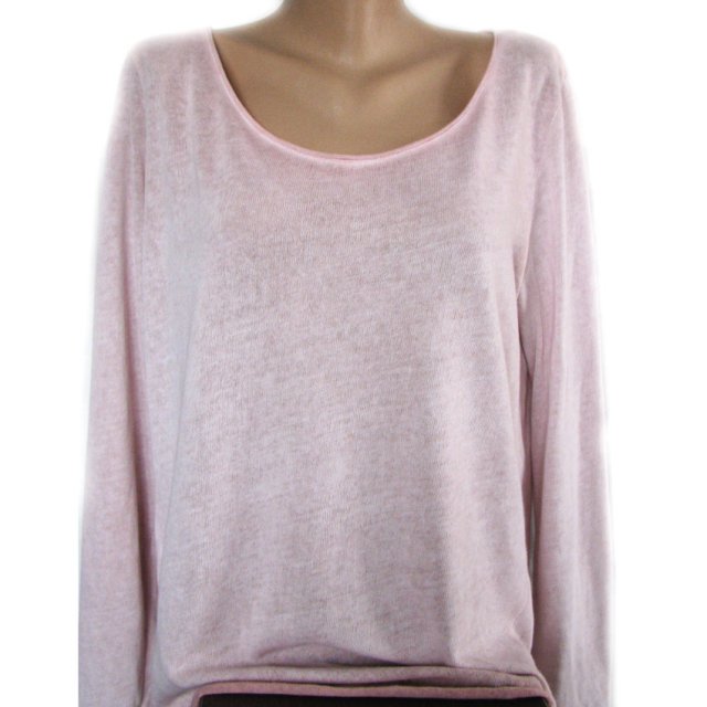 Różowa bluzeczka firmy Cotton Candy, z długim rękawem, przód krótszy niż tył. Materiał dzianinowy. Wymiary na płasko: biust 54 cm, talia 55 cm. Długość bluzki mierzona przodem od ramienia 67 cm, tyłem 75cm.