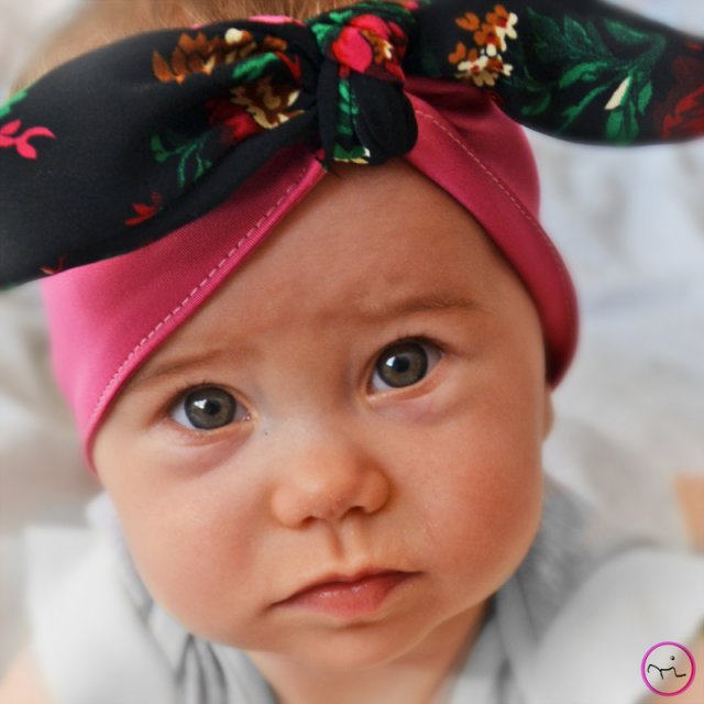 Śliczna kokardka na główkę dla małej księżniczki wykonana została z pięknego różowego materiału, wiązanie z cienkiego materiału w kwiatki. Opaska szyta na wymiar (w zmówieniu proszę podać obwód główki maluszka).