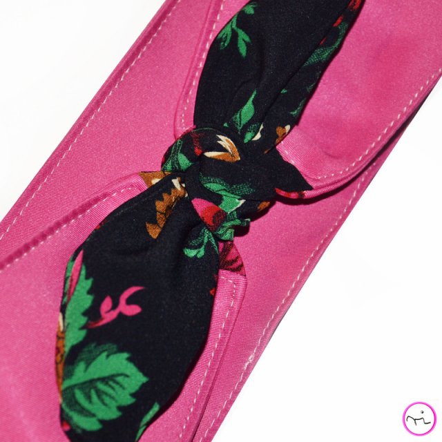Śliczna kokardka na główkę dla małej księżniczki wykonana została z pięknego różowego materiału, wiązanie z cienkiego materiału w kwiatki. Opaska szyta na wymiar (w zmówieniu proszę podać obwód główki maluszka).