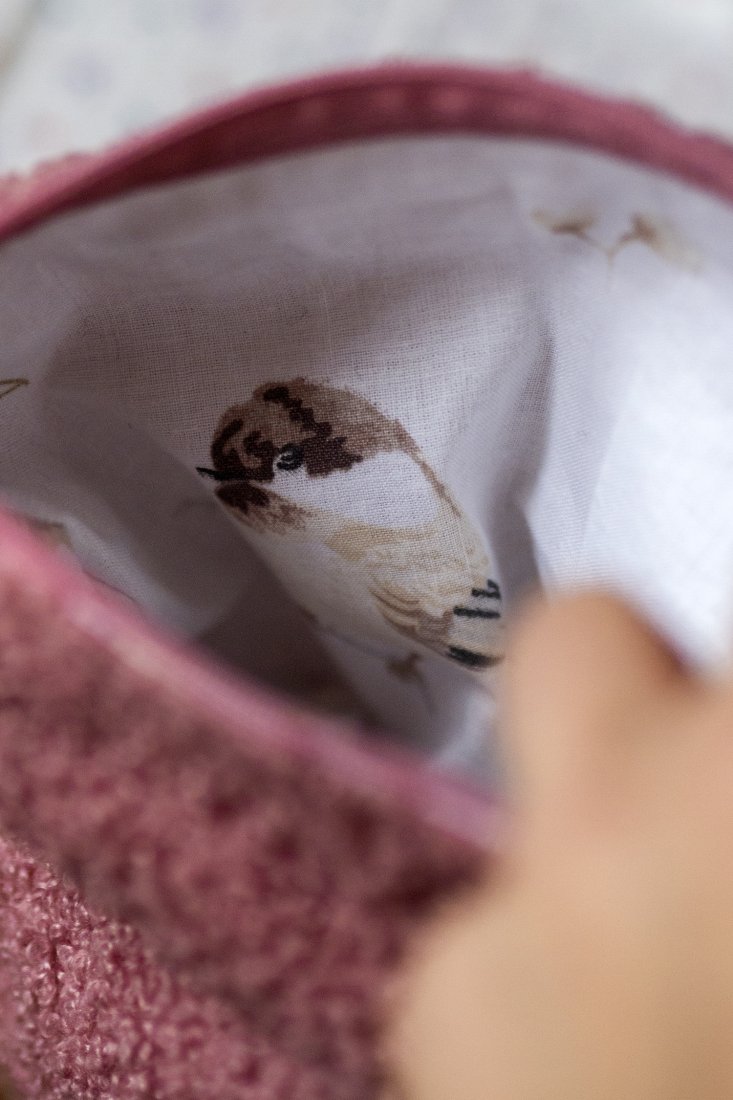 Kosmetyczka jest zapinana na suwak, w środku bawełniana podszewka.