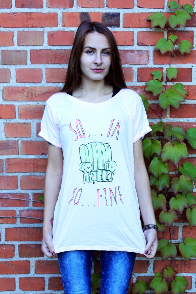 Bladoróżowy t shirt Pull&Bear z nadrukiem.