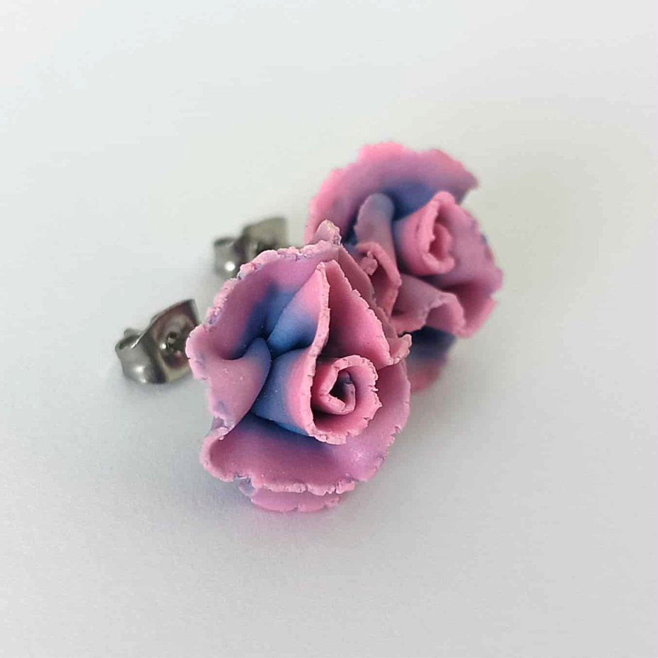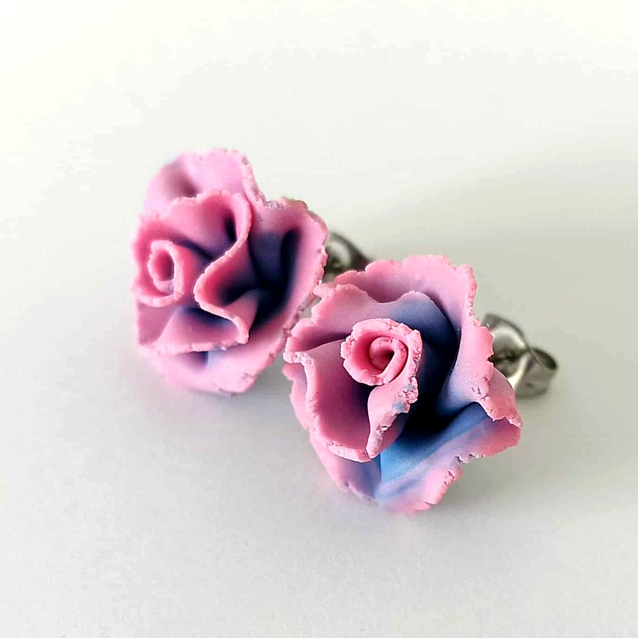 Urocze kolczyki w kształcie delikatnych różowo fioletowych różyczek, wykonane ręcznie z masy polimerowej. Każda para jest unikatowa i powstała z dbałością o najmniejsze detale. Idealne dla miłośniczek subtelnej, kwiatowej biżuterii. Lekkie i wygodne w noszeniu, doskonałe na co dzień lub jako drobny prezent.