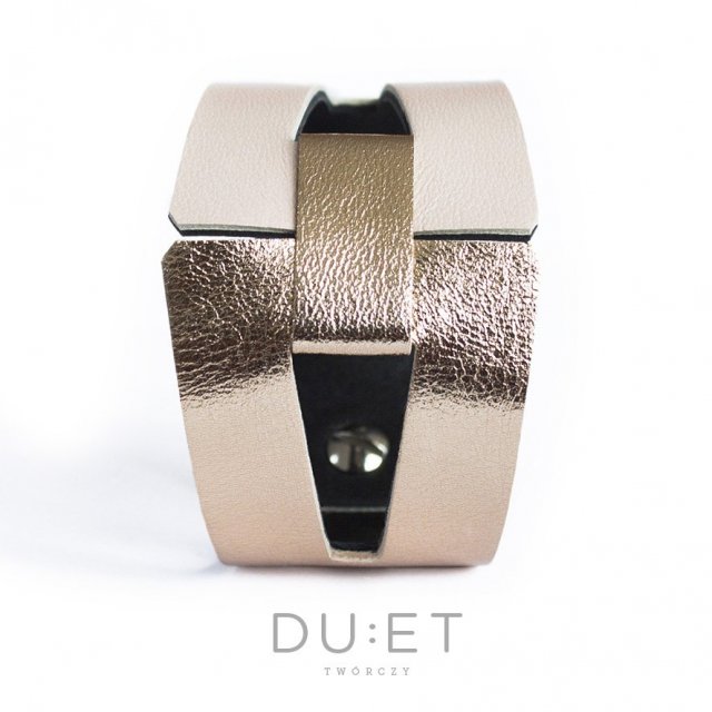 Subtelna, świetlista bransoleta, elegancka i szykowna, od podstaw wykonana ręcznie z najwyższej jakości skór naturalnych: w kolorach: pudrowego różu, różowego złota i miękkiej, czarnej, licowej wewnątrz. Pięknie układa się na ręce, jest miękka, wygodna i starannie wykonana.