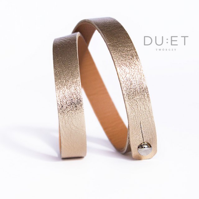 Mięciutka i wygodna bransoletka wykonana z wysokiej jakości skóry naturalnej w kolorze różowego złota. Subtelna, minimalistyczna ozdoba. Do dwukrotnego owinięcia nadgarstka.