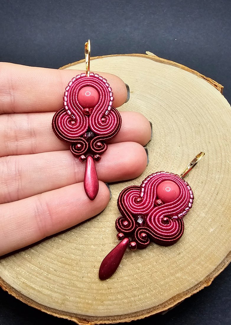 Tagi: #haftowane kolczyki, #sutasz, #szklane koraliki, #wiszące kolczyki