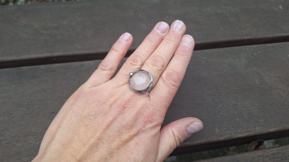 Tagi: #kwarc różowy, #pierścionek z kwarcem, #różowy pierścionek, #witrażowy pierścionek
