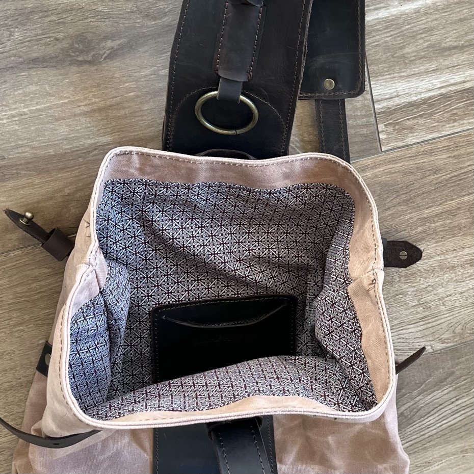 Czy marzysz o plecaku, który łączy historyczny urok z praktycznością? Ten różowo-brązowy bukłak to prawdziwe arcydzieło rzemieślnicze, inspirowane tradycyjnymi pojemnikami na wodę. Wykonany z woskowanej bawełny Wax Cotton i skóry Crazy Horse, stanie się Twoim wiernym towarzyszem podróży.