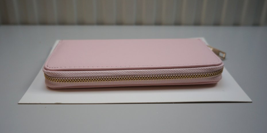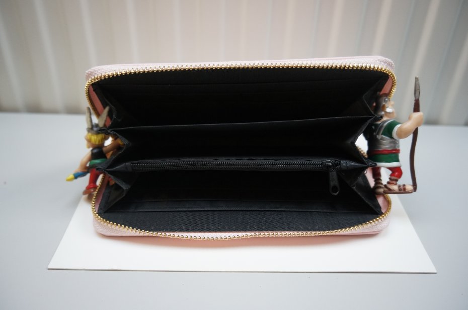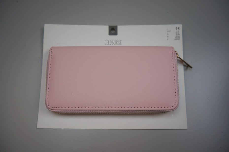 Damski portfel zapinany na suwak. Wewnątrz trzy duże przegrody na banknoty i jedna na bilon, zapinana na suwak. Ponadto miejsce na karty i inne drobiazgi. Wierzchnia strona - 60% poliuretan, 40% poliester. Kolor różowy. Nowy. Stan bardzo dobry.