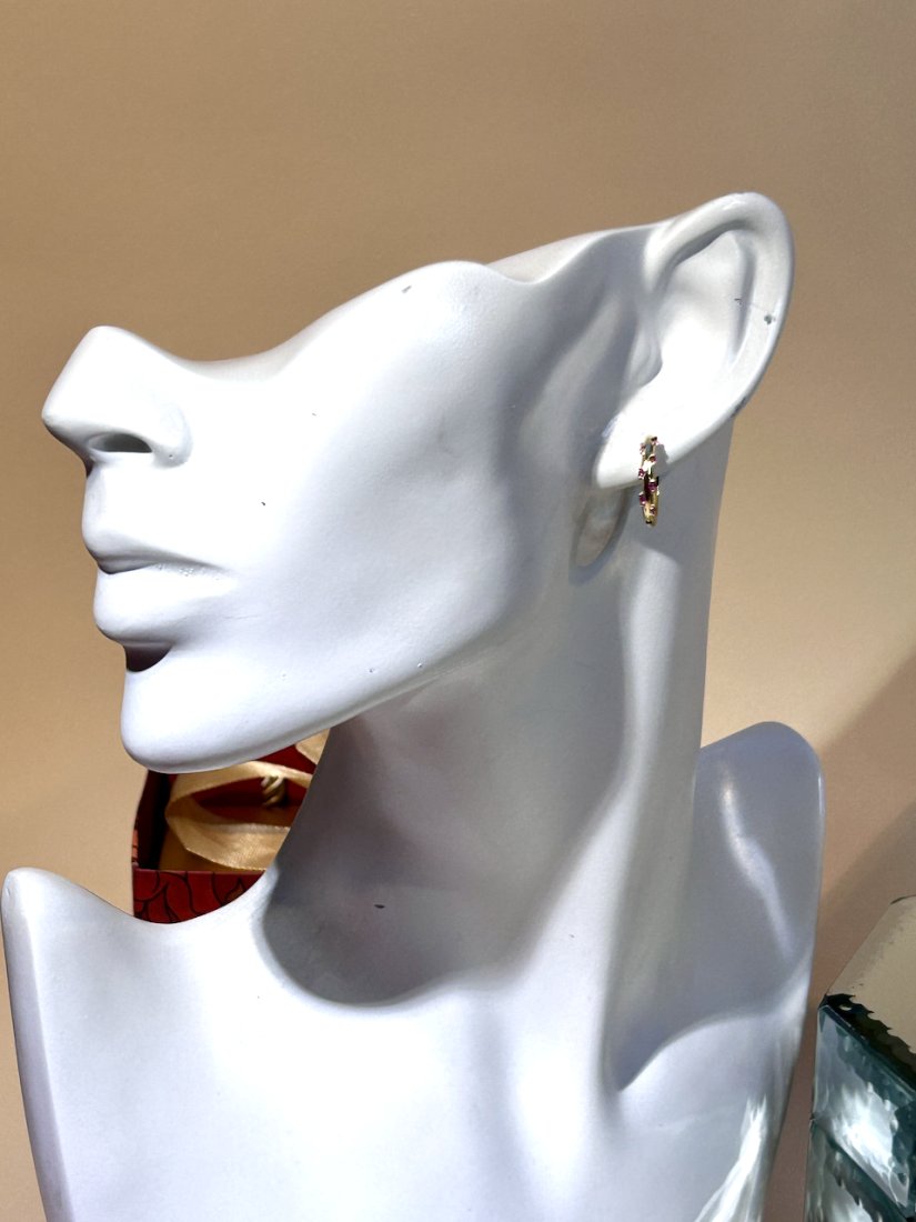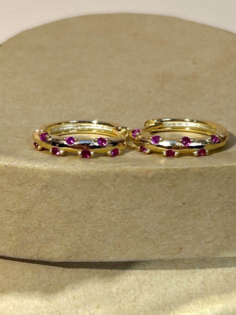 Delikatne srebrne, złocone kreolki z rubinowymi cyrkoniami.