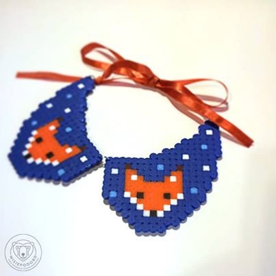 Rudy ojciec, rudy dziadek, Rudy ogon - to mój spadek. Osobliwy kołnierzyk w kolorze ultramaryny, z motywem rudego liska i opadających płatków śniegu. Idealny do puchatych i przytulnych swetrów. Kołnierzyk został wykonany z plastikowych koralików, tasiemka satynowa dł. max. 37cm, z możliwością regulacji. UWAGA - Kołnierzyk jest dwustronny, można go nosić zarówno od strony sprasowanej , jak i widocznej faktury koralików, wg. uznania.