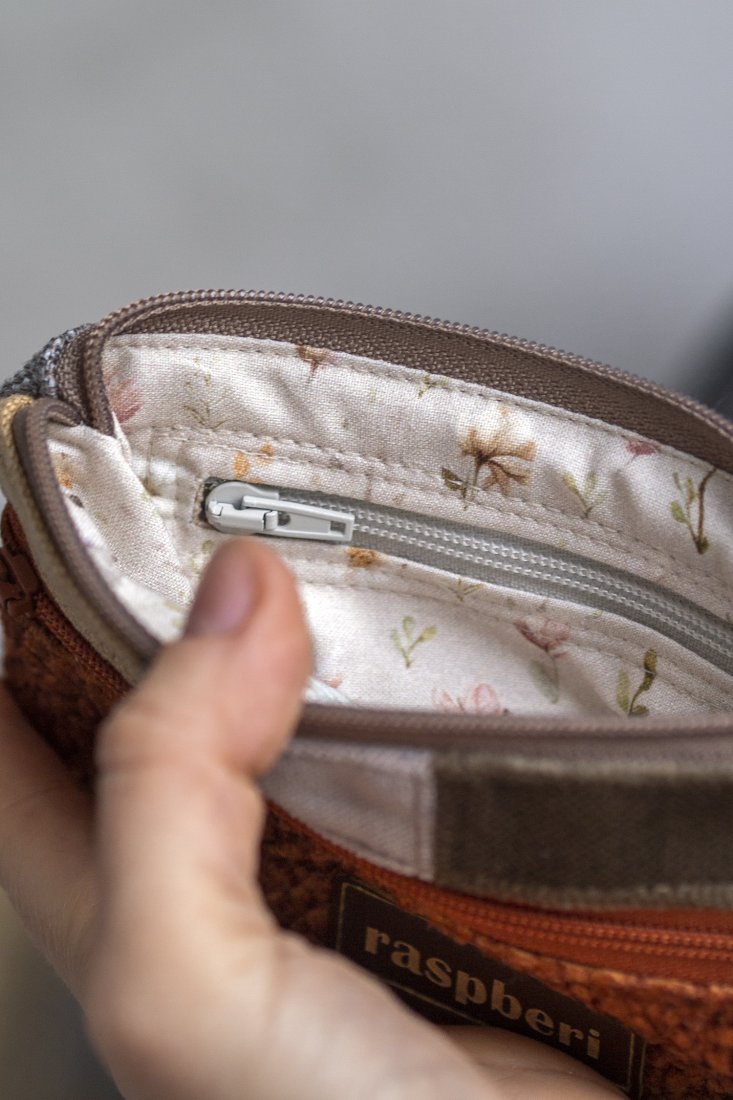 Idealny na karty płatnicze oraz pieniądze. Zapinany na suwak, z przodu kieszonka na drobne, w środku bawełniana podszewka i kieszonka na suwak.