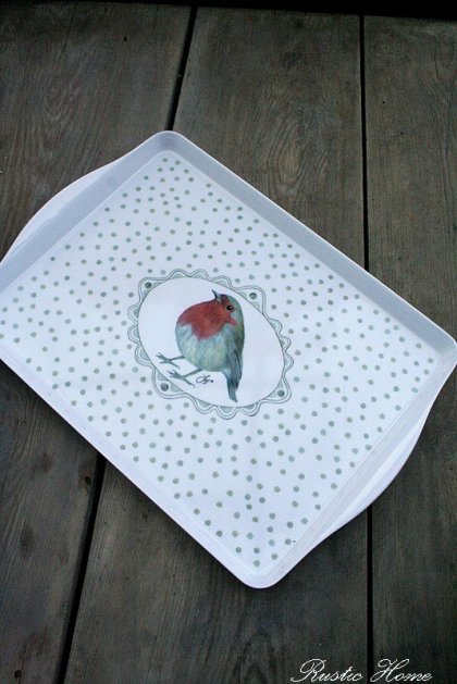 Urocza taca do serwowania potraw... Słodki ptaszek rudzik na kropkowym tle :) Tworzywo sztuczne , odporna melamina.