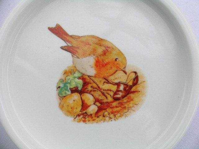 Porcelanowa podstawka pod doniczkę z uroczą ciekawsko-rudzikową obecnością. Doskonale teź jako spodek-talerzyk sprawdzić się może :) Jakość malatury i błyszczące szkliwienie. Tło ecru. Prosta, przyjemna forma. 10,5 x 1,5 cm. Stan zachowania bardzo dobry.