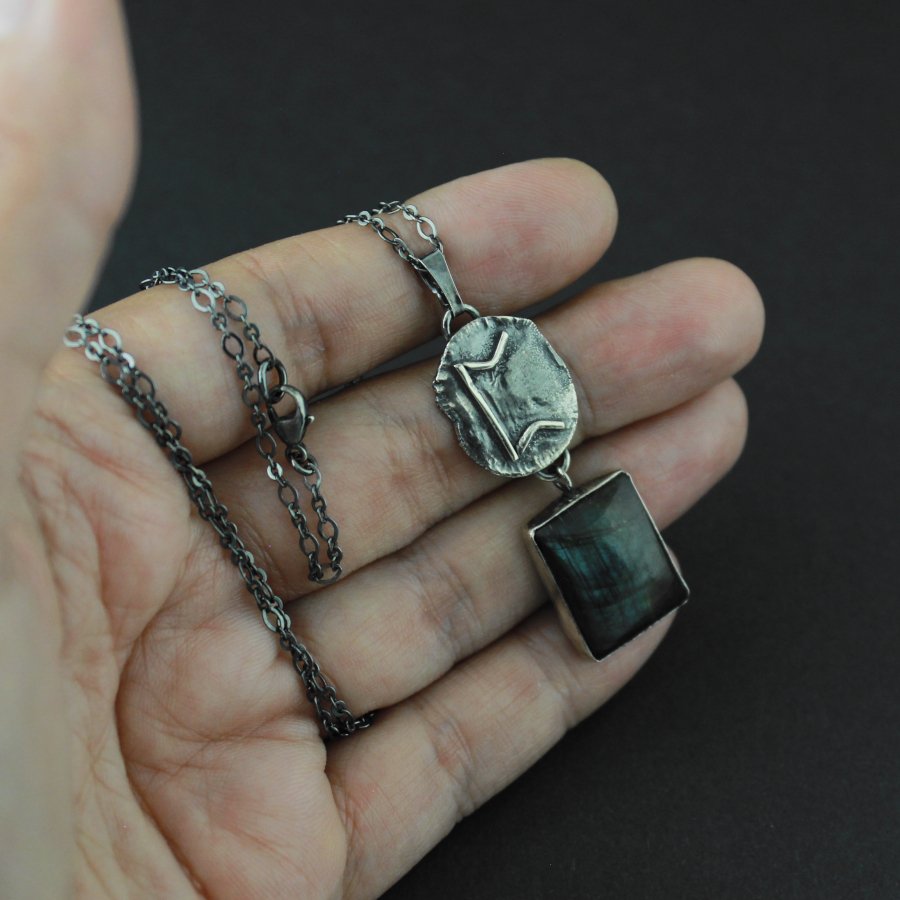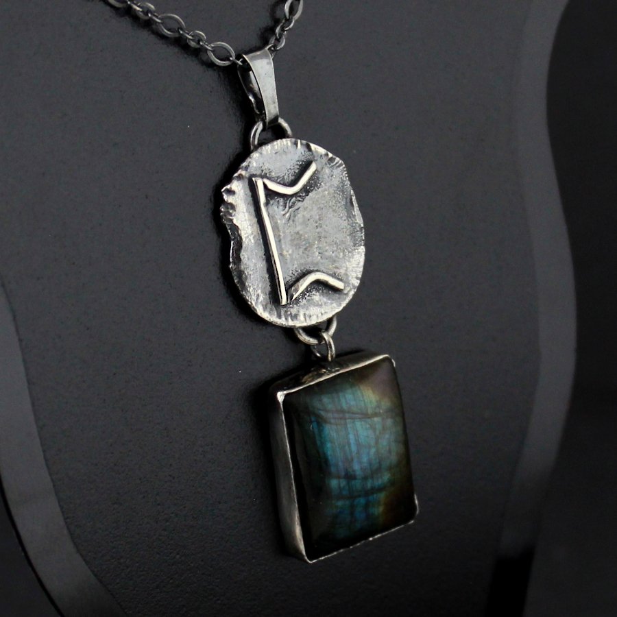 Biżuteria zostanie zapakowana w eleganckie etui, a na życzenie istnieje możliwość wykonania innej runy z wybranym kamieniem. Praca w całości wykonana ręcznie – od formowania blachy i symbolu runicznego, przez lutowanie, aż po zakuwanie kamienia – unikatowy amulet inspirowany mocą run nordyckich, run wikingów i run starogermańskich.