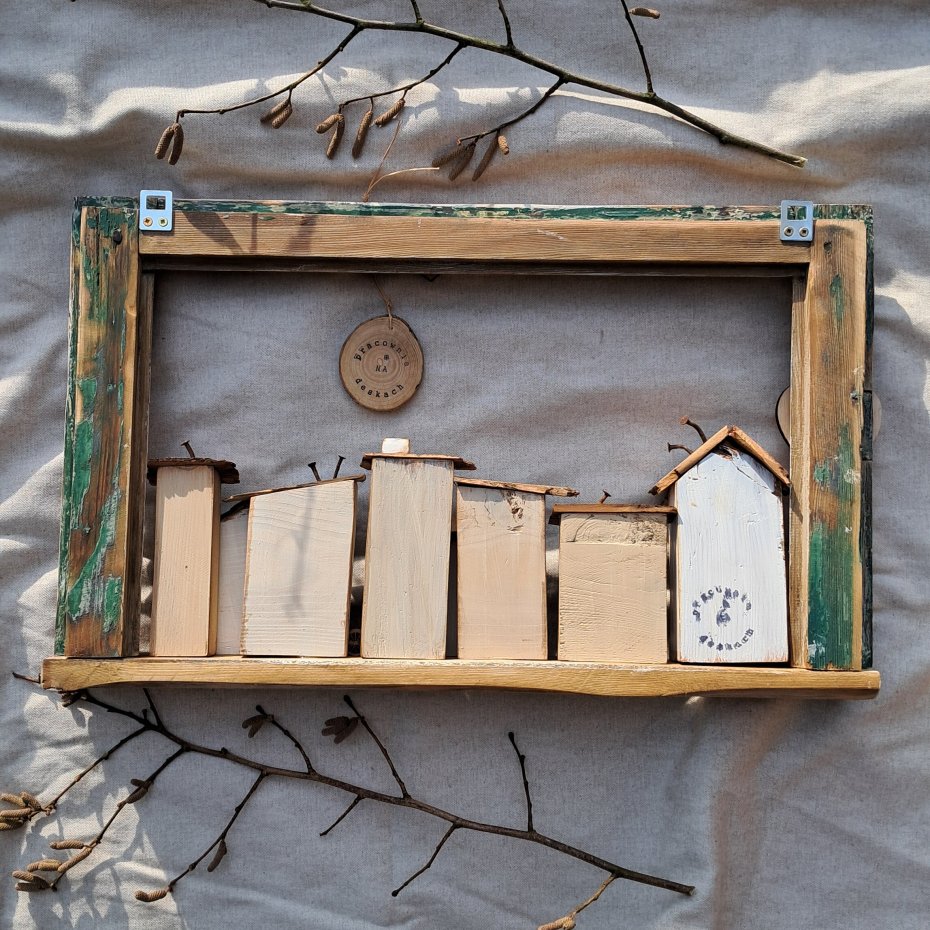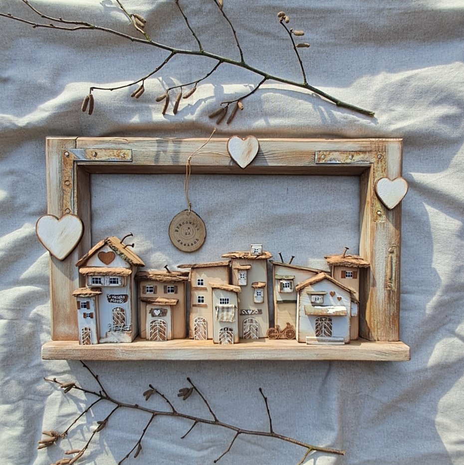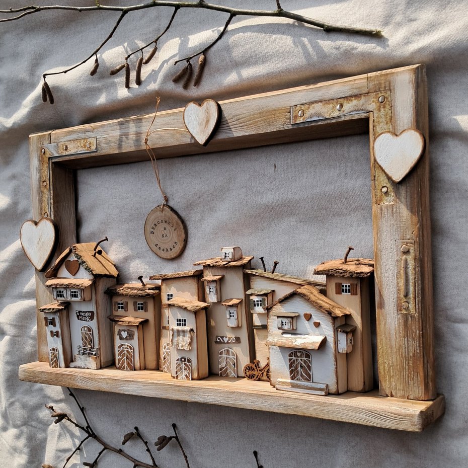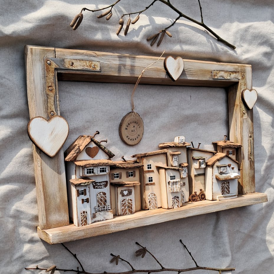 Tagi: #domki z drewna, #ozdoba na ścianę, #rustykalna dekoracja, #trójwymiarowy obraz