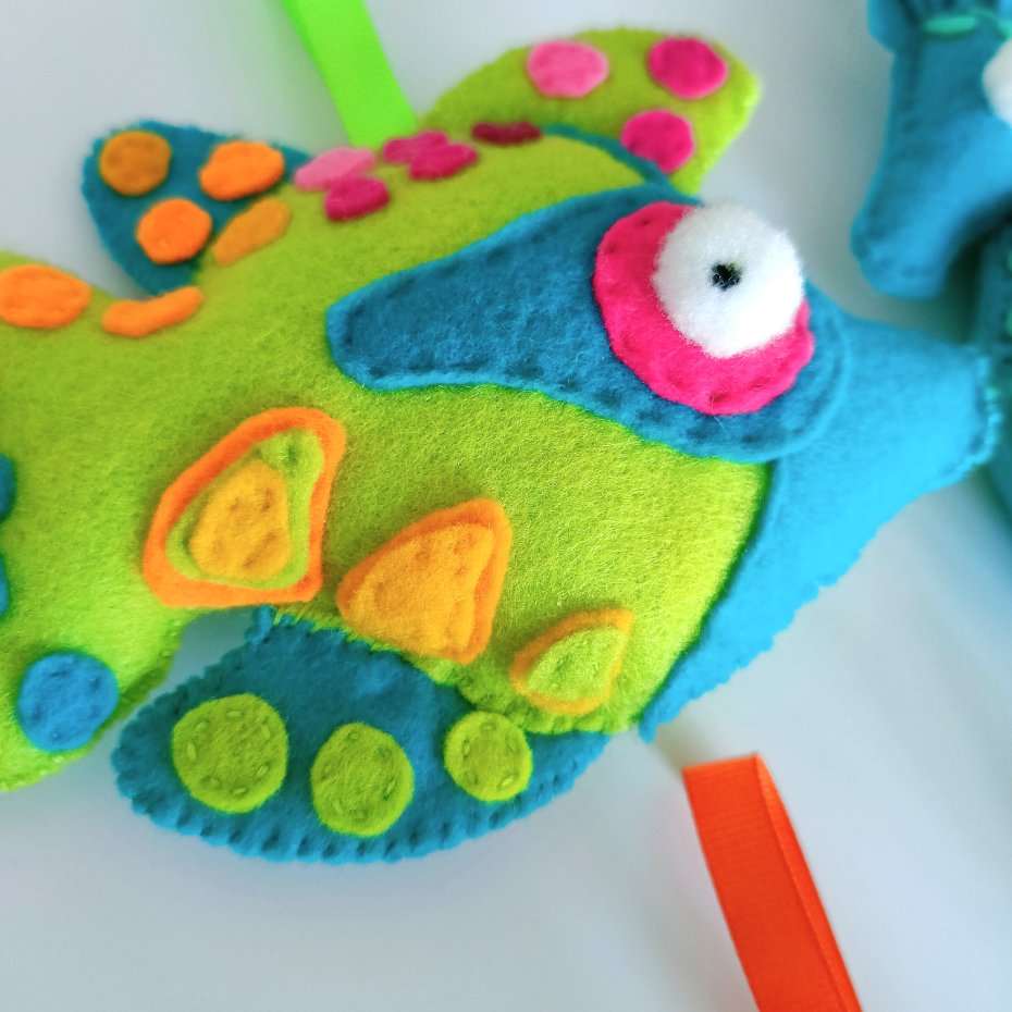 Żywe, wesołe kolory przykują uwagę każdego dziecka. Zawieszka może być zarówno ozdobą jak i zabawką.
