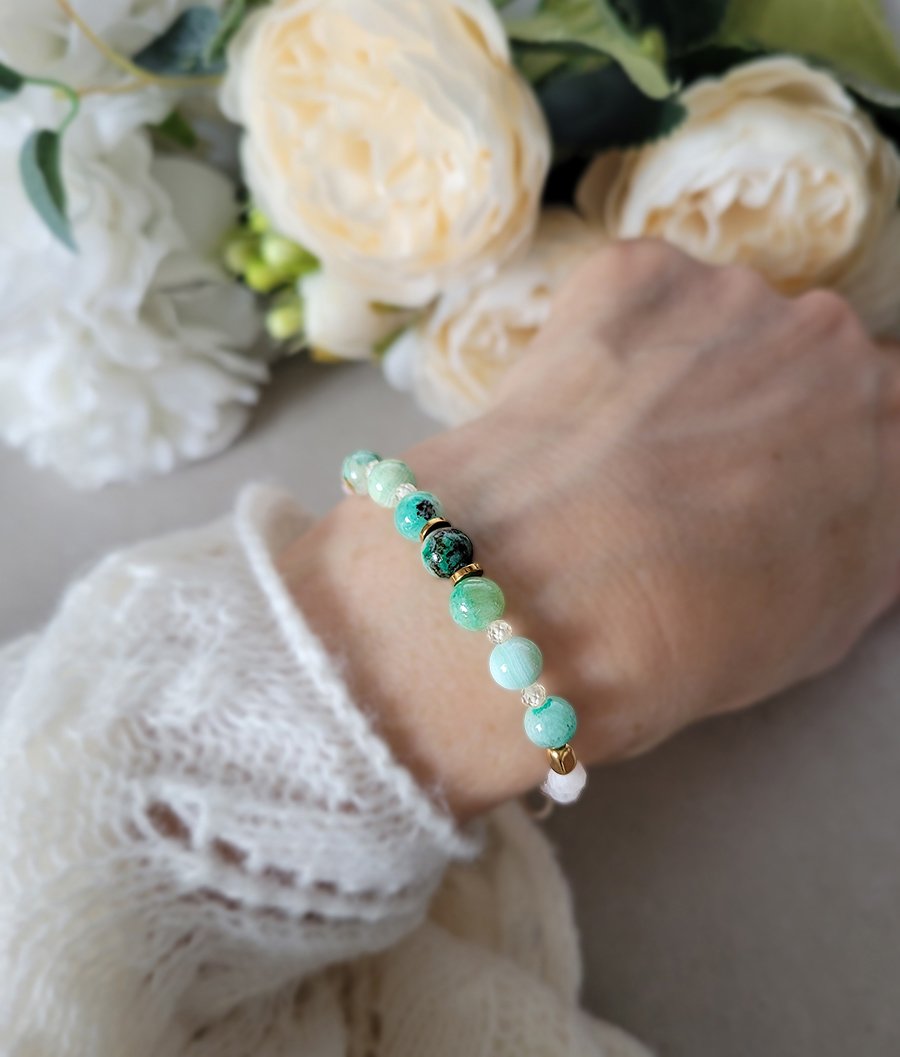 Bransoletka zrobiona z kamieni o śr. ok. 6mm. oraz 4mm.
