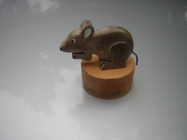Niesamowita TEPMERÓWKA Drewniana. Bardzo szlachetnie wykonana. Dwa rodzaje i kolory drewna. Myszka z drewna ciemniejszego, szaro-brązowego. Podstawa z plasticzaną temperówką od spodu w kolorze miodowym z delikatnie podmalowaną zieloną trawką ;) Wykończenie naturalne, satynowo-matowe. Ogonek ruchomy, druciany. Dowcipne i użytkowe cudeńko ;)