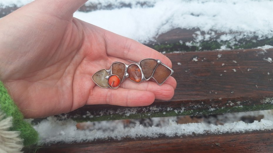 #broszka z bursztynem,