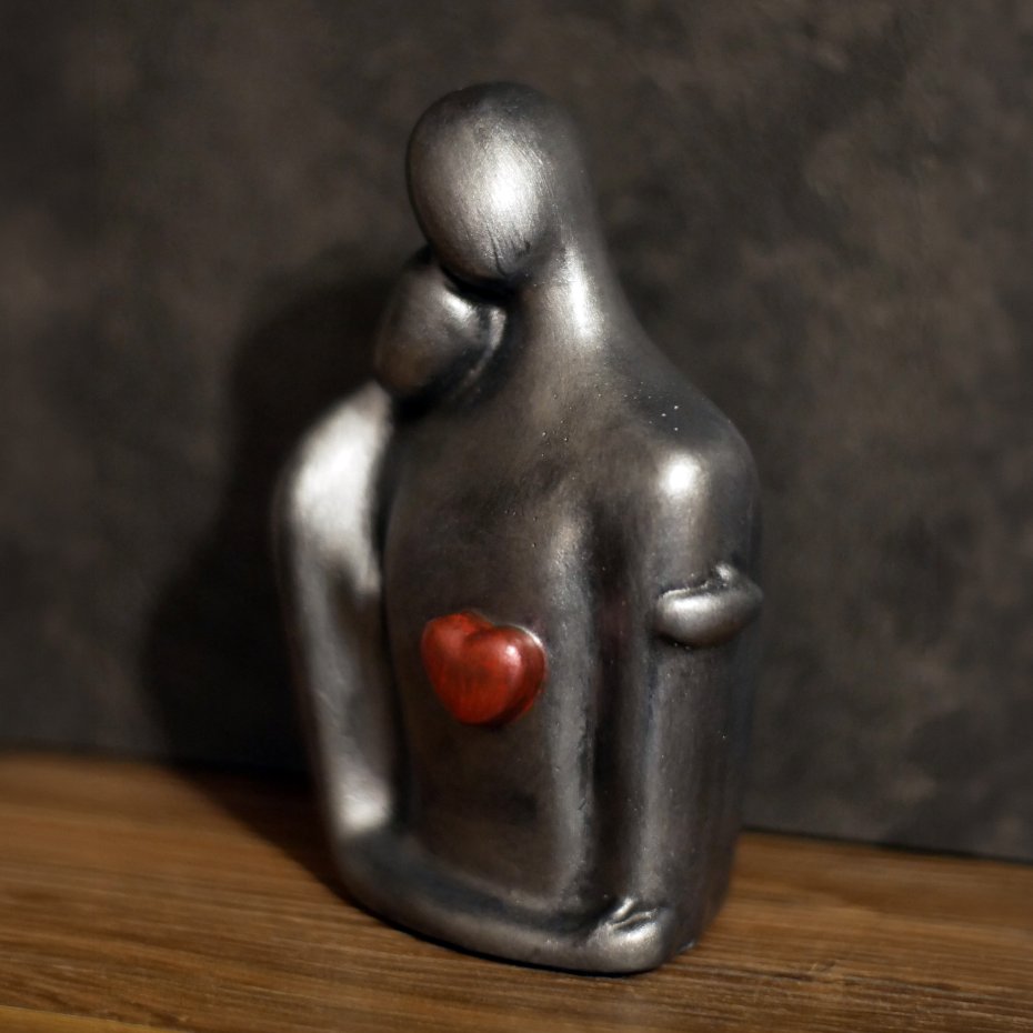 Rzeźba z gipsu, Jesteś Moim Skarbem, srebrno-czerwona, wys. 12,5 cm