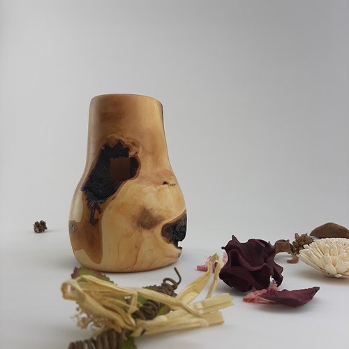 Przeznaczenie: Dekoracja, wazon na suche kwiaty (drewno nie jest przeznaczone do kontaktu z wodą).