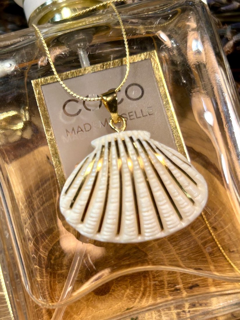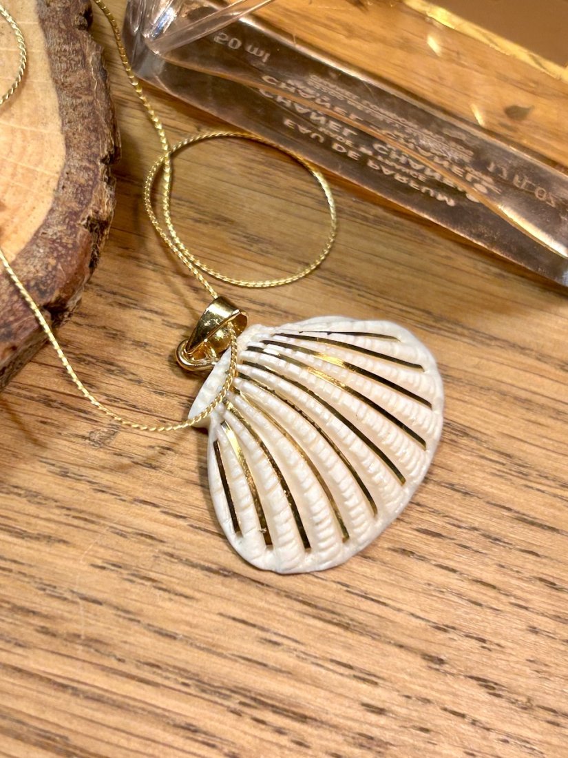 Tagi: #naszyjnik na prezent, #naszyjnik pozłacany, #naszyjnik vintage złoty, #rzeźbiona muszla w srebrze
