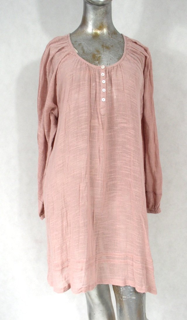 Sukienka lub tunika,firmy SAINT TROPEZ.Rozmiar L,może być większy rozmiar ,fason luźny.Metka z rodzajem materiału obcięta.Materiał miękki,luźno tkany wg.mnie bawełna.Rękaw reglan,długi na końcu ściągany gumką.Z przodu rozcięcie,zapięte na pięć guziczków.Dekolt marszczony,zebrany do plisy.Dól ozdobiony naszytymi dwoma paskami.Stan ogólny dobry+.Długość 86 cm.pod pachami 126 cm.