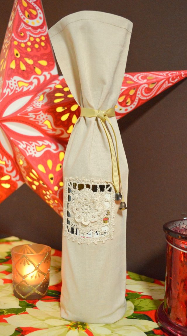 Jak pięknie zapakować wino bądź inny trunek? W odpowiedzi na to pytanie stworzyliśmy wyjątkowe sakiewki na alkohole! Sakiewka zdobiona ręcznie wykonaną KORONKĄ KONIAKOWSKĄ. Pomieści większość standardowych butelek na wina oraz mocniejsze trunki :) Zapraszamy! Wymiary: wysokość 35cm, obwód 27cm