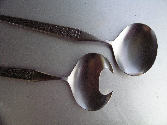 Duet sztućców sałatkowych sygnowanch CORDOWA Stailness Stell Foregin w intrygującym nowoczesnym wydaniu. Ciekawy nowoczesny kształt i kwiatowo-graficzne zdobienie Praktyczne też do makaronów etc. Długie, wygodne - 27,5 x niecałe 7 Stan zachowania dobry /normalne ślady użytkowania./