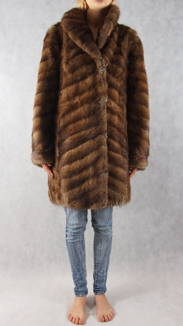 Ekskluzywne naturalne futro. Na podszewce. Futro bardzo dobrze, kobieco skrojone, zapinane na guziczki. Ceny futer nowych wahają się między 2000 a 3500zł.