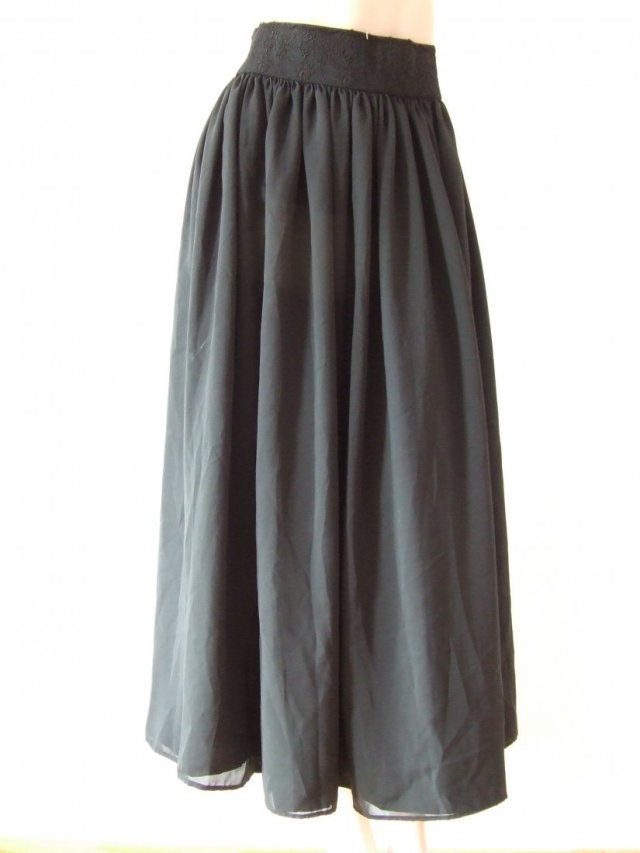 Czarna szyfonowa spódnica maksi zapinana z boku na zamek i haftki, pas ozdobny koronkowy. Spódnica posiada podszewkę.