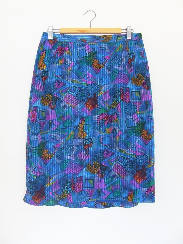 Świetna wzorzysta spódnica z podszewką, kieszonkami i rozcięciem z tyłu. Eksplozja barw z przewagą kobaltowego koloru. W pasie po bokach elastyczne wstawki dzięki którym spódnica się lekko naddaje i dopasowuje w pasie. Zapinana z tyłu na zamek i guzik.