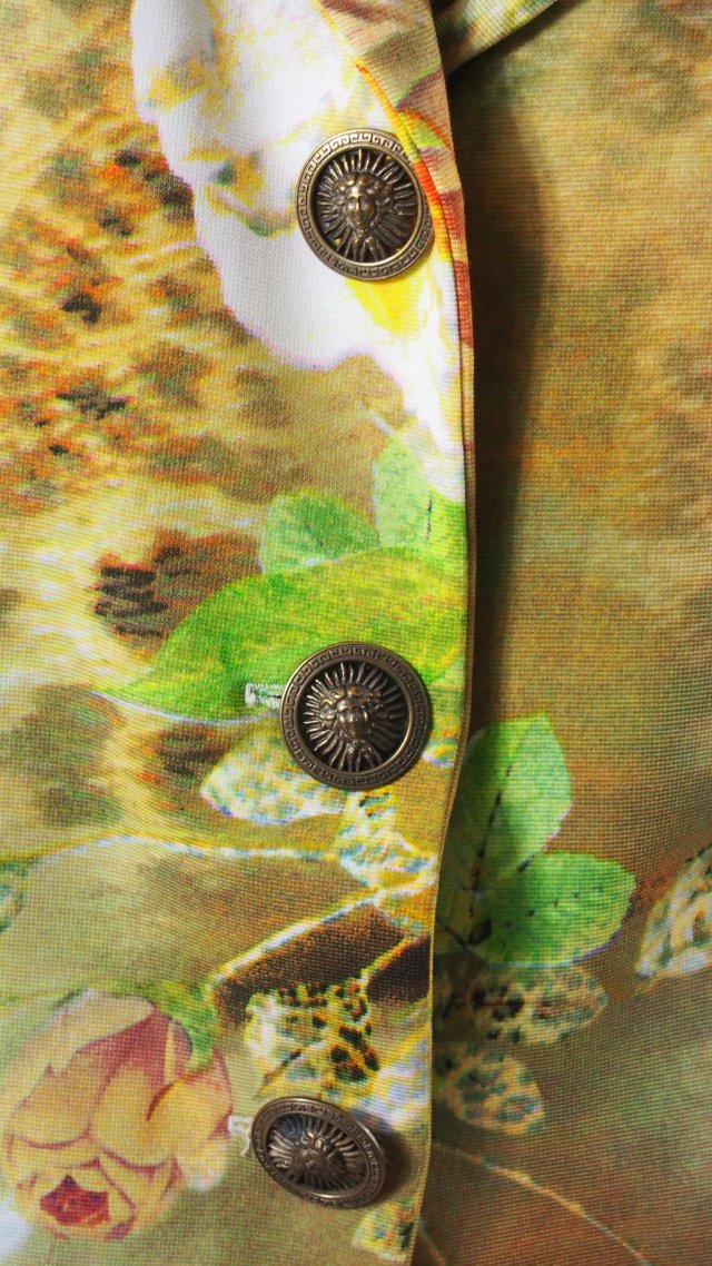 Marynatka z bardzo ciekawym nadrukiem. Lekko elastyczna. Brak metek, natomiast sądzę, iż jest to bawełna z elastyną.