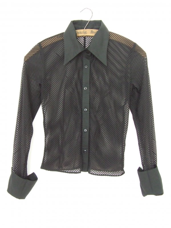 Czarna prześwitująca koszula z kołnierzykiem zapinana z przodu na guziki.