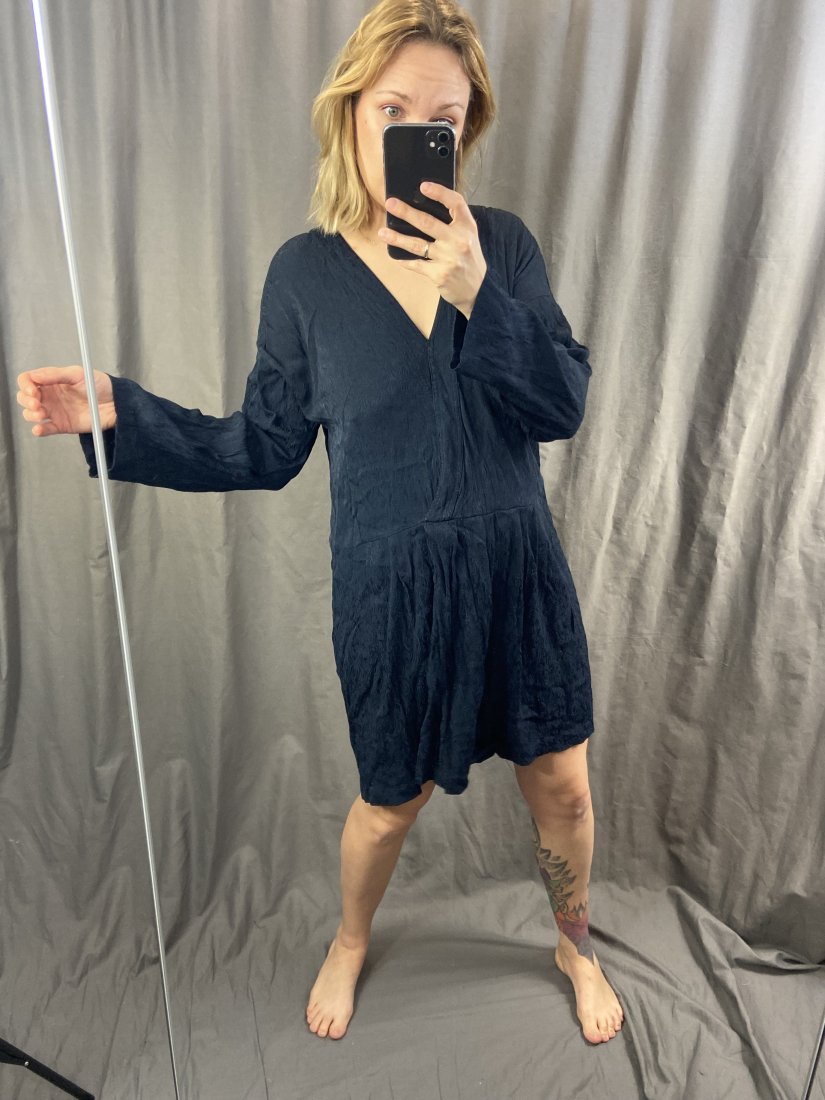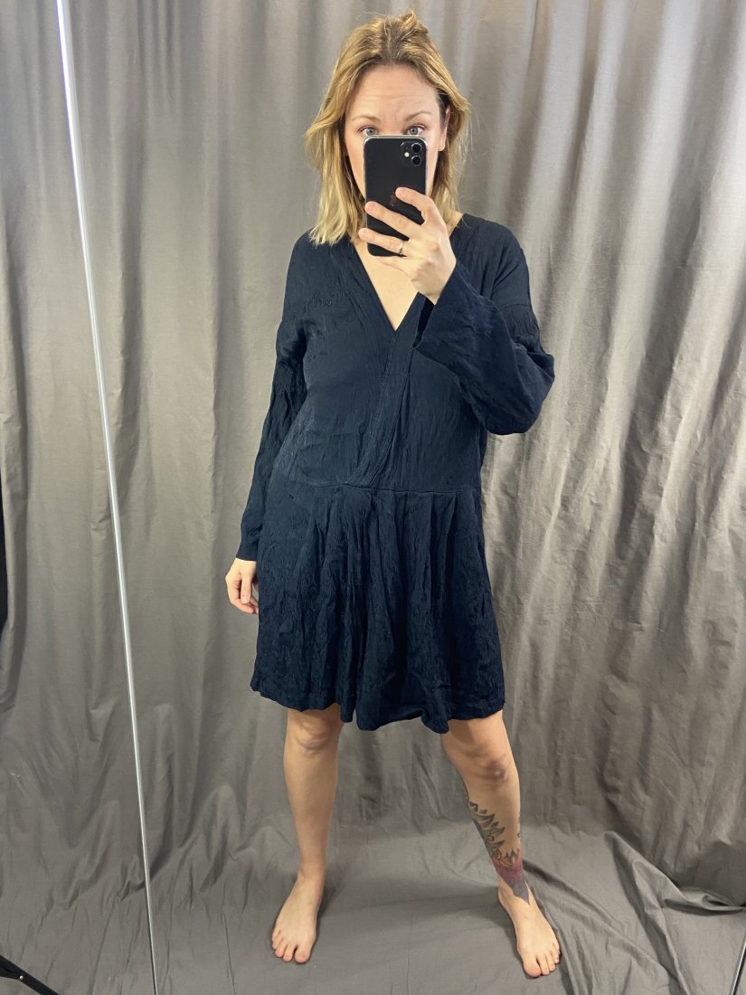 Samsoe&Samsoe. Sukienka z tłoczonej wiskozy. Z kieszeniami w biodrach.