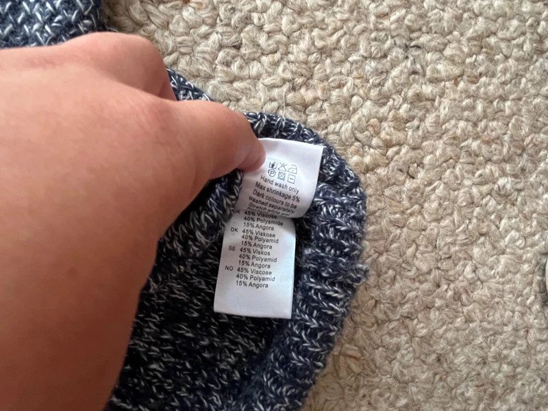 Skład materiału: 45% wiskoza, 40% poliamid, 15% angora.