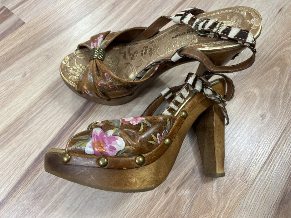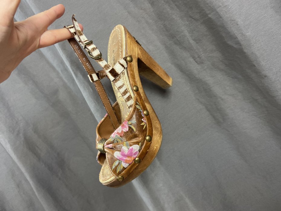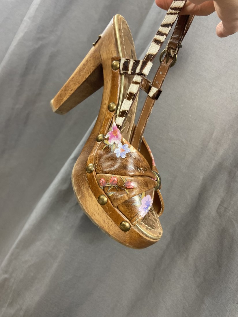 Przepiękne sandały brazylijskiej marki Claudina. Drewniana baza+ skórzane dodatki.