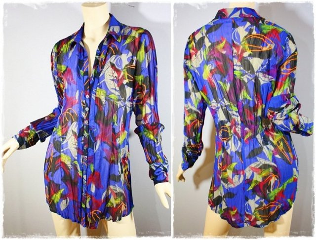 Fenomenalna koszulowa transparentna bluzeczka / tunika od SANDWICH_ , gnieciona żorżeta , fantastyczny print , nasycone piękne kolory , z tyłu w tali wszyte gumeczki .